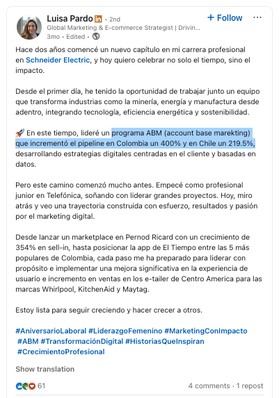 La estrategia combinada de ABM + Social Selling + activación de cuentas logró impactos medibles en Colombia y Chile: